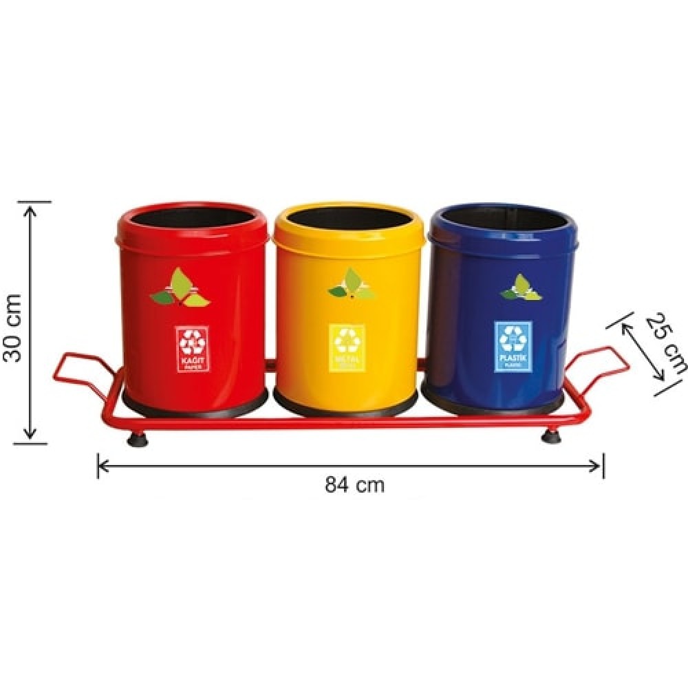 1832 Boyalı Otel Tipi 3 Bölmeli Sıfır Atık Geri Dönüşüm Seti