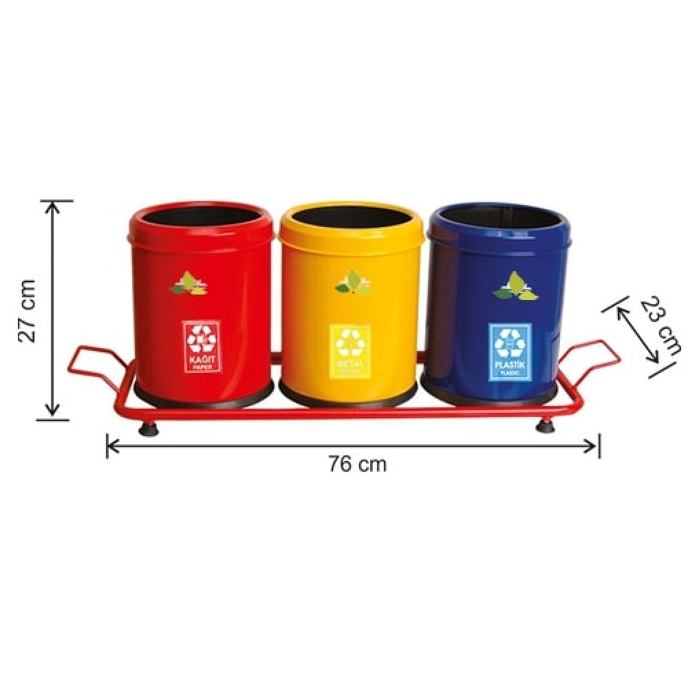 1833 Boyalı Otel Tipi 3 Bölmeli Sıfır Atık Geri Dönüşüm Seti