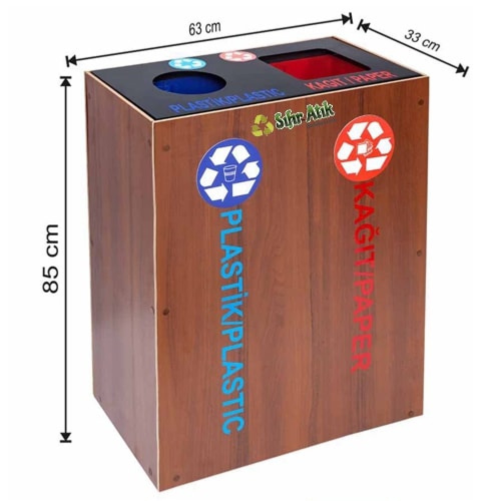 2516 Ahşap 2 Bölmeli Sıfır Atık Geri Dönüşüm Seti