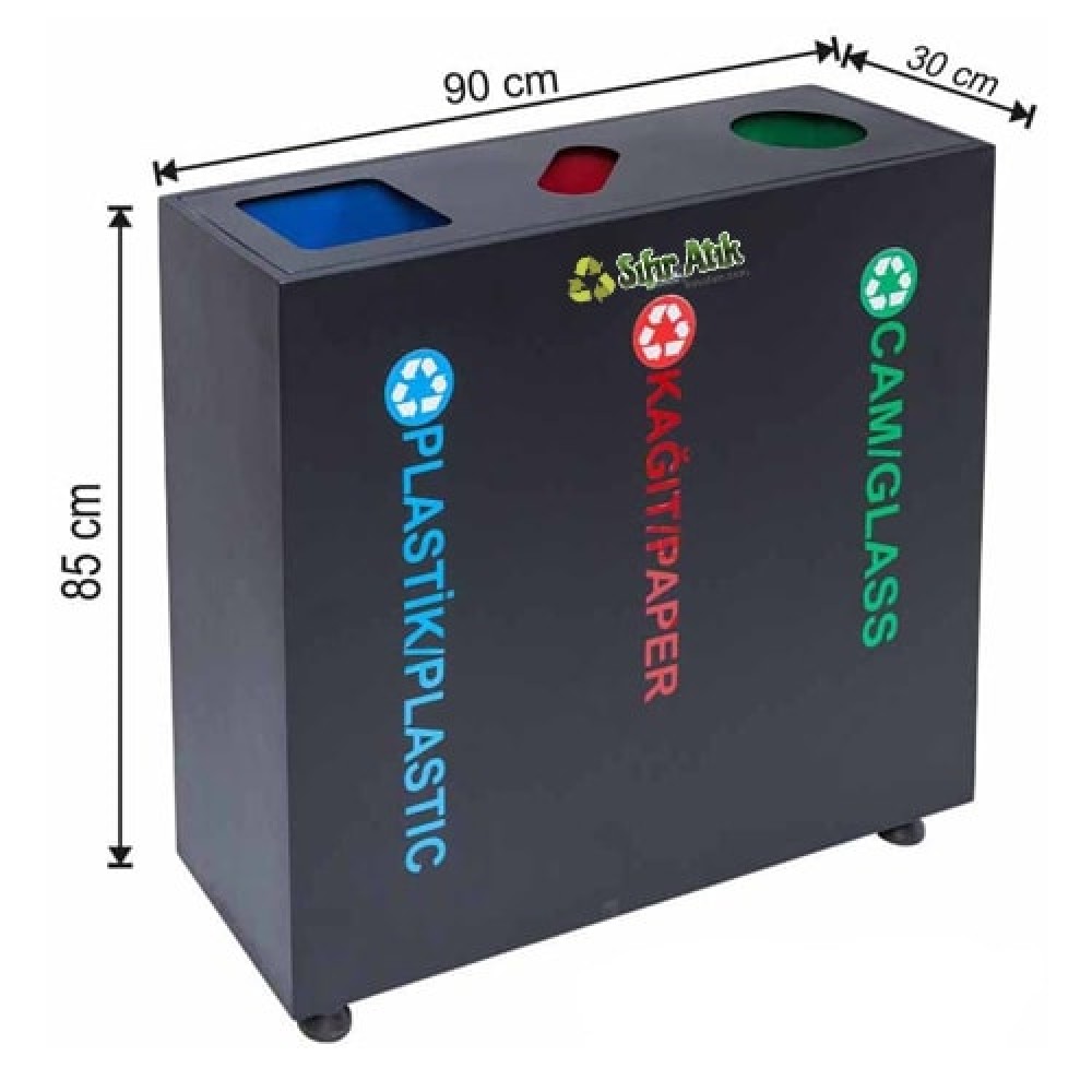 2509 Boyalı 3 Bölmeli Kovalı Sıfır Atık Geri Dönüşüm Seti