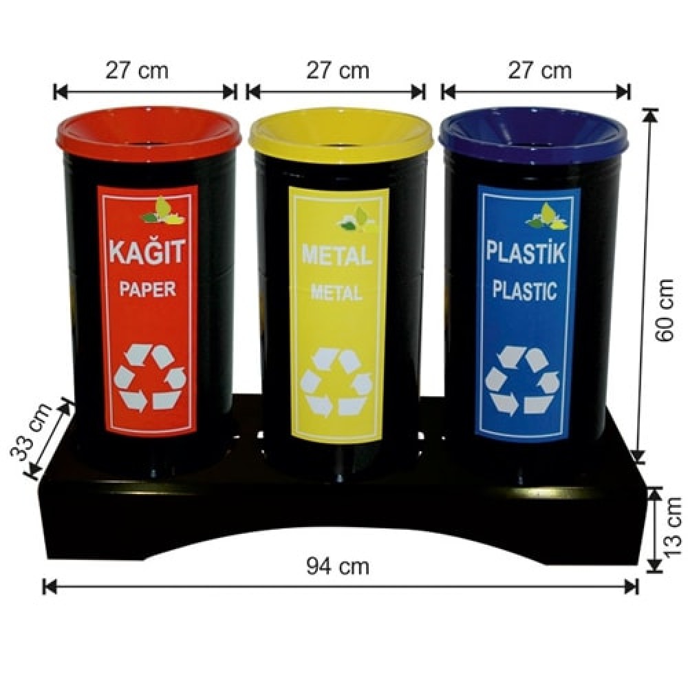 1840 Boyalı 3 Bölmeli Sıfır Atık Geri Dönüşüm Seti