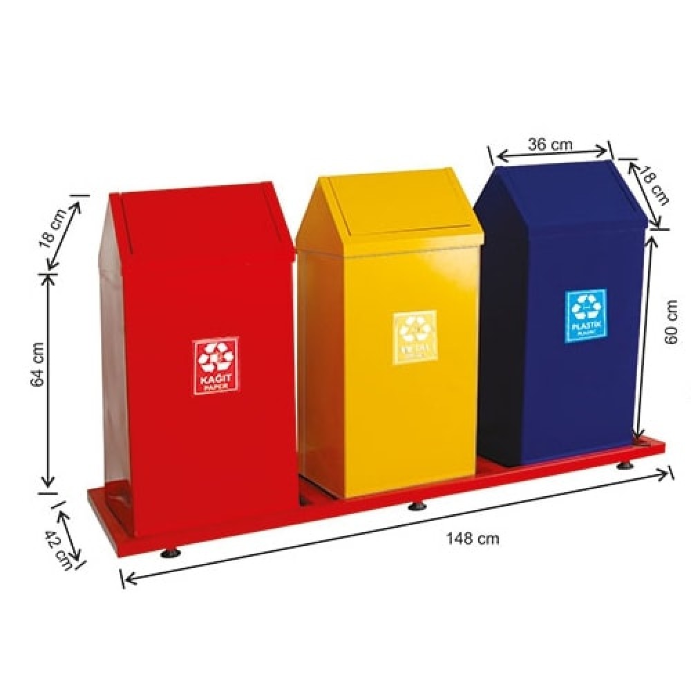 1835 Boyalı Çatı Kapaklı 3 Bölmeli Sıfır Atık Geri Dönüşüm Seti